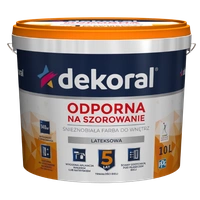 Farba do ścian i sufitów lateksowa DEKORAL ODPORNA NA SZOROWANIE Śnieżnobiała mat 10l