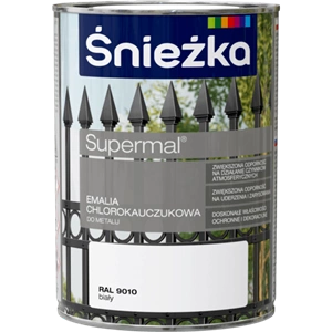 Farba do metalu chlorokauczukowa ŚNIEŻKA Supermal biały RAL9010 połysk 0,9l