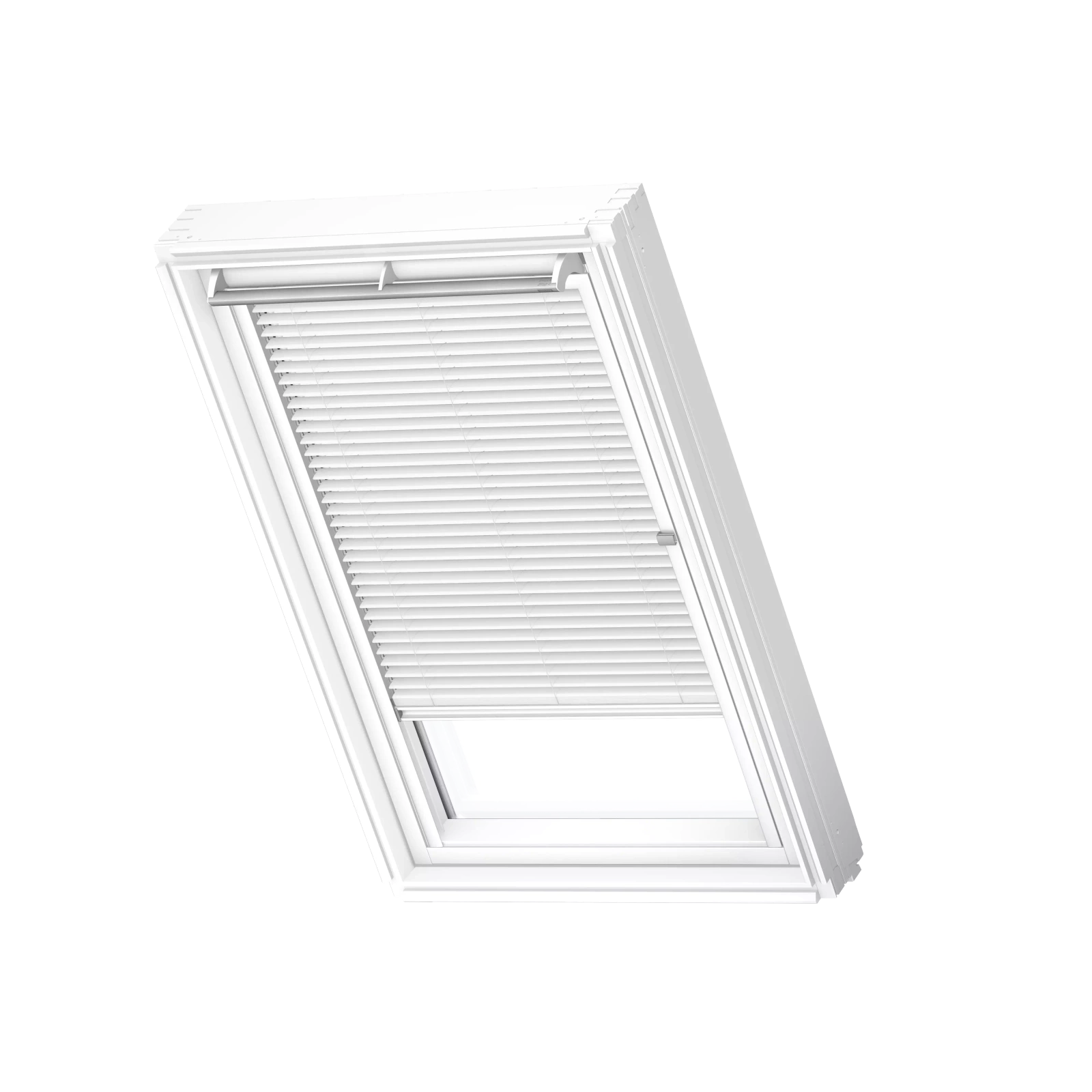 Połącz klasyczny wygląd żaluzji z oknami dachowymi VELUX. Niewymagające częstej konserwacji, odporne na wilgoć żaluzje VELUX doskonale sprawdzają się w łazienkach i kuchniach o wysokim stopniu wilgotności. Dzięki unikatowej konstrukcji wyeliminowano nieestetyczne, zwisające sznurki. Wystarczy nachylić listwy w dowolnym kierunku, aby wyregulować ilość wpadającego światła lub zadbać o prywatność. Rolety VELUX z białymi prowadnicami doskonale pasują do białych okien dachowych VELUX.