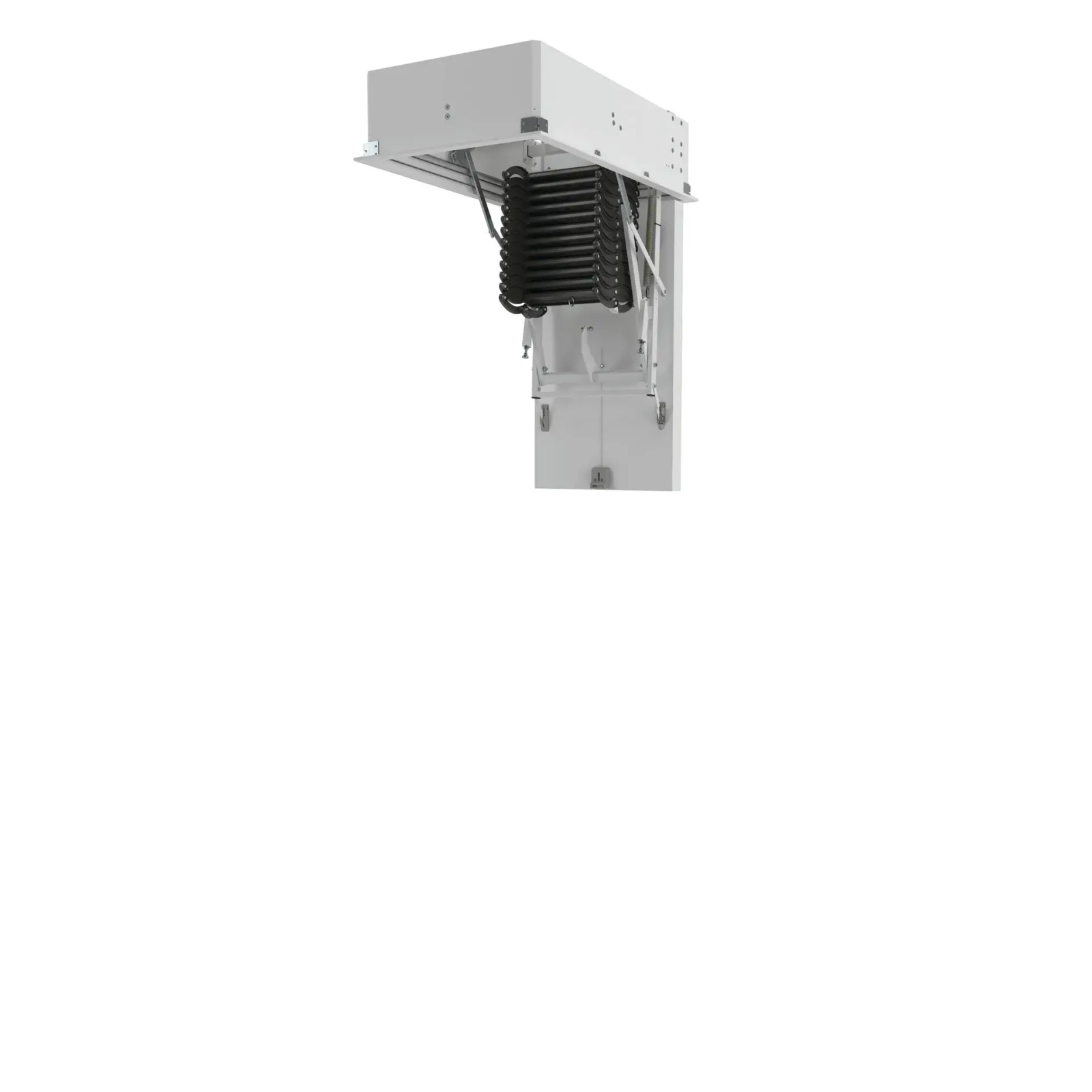Schody strychowe Fakro GREENSTEP LET ELECTRIC to innowacyjny model schodów sterowanych elektrycznie. Obsługiwane są za pomocą pilota, aplikacji mobilnej lub przycisku naściennego. Mamy do wyboru jeden z dwóch zestawów sterujących Z-Wave i WiFi Tuya, który należy koniecznie dokupić. Możemy wybrać nie tylko odpowiadający nam sposób obsługi schodów, ale także mamy możliwość integracji schodów z systemem Fakro SmartHome. Zestaw sterujący, bez względu na to na który się zdecydujemy, jest wyposażony w przycisk naścienny. Schody te posiadają znakomite parametry termoizolacyjne, czego dowodem jest niski współczynnik przenikania ciepła na poziomie Uw wynoszącym tylko 0,51. Klapa wypełniona jest materiałem termoizolacyjnym EPS, co sprawia, że schody te znacząco redukują straty ciepła. 4 klasa szczelności również gwarantuje bardzo wysoką skuteczność izolacji termicznej. Estetycznie zamontowaną klapę typu sandwich w kolorze białym z obrzeżem oklejonym ABS, cechuje doskonała szczelność. Drabina wykonana jest z metalu o nożycowej konstrukcji. Stopnie również są metalowe i posiadają profil antypoślizgowy. Schody te nie posiadają poręczy. W standardowym wyposażeniu znajduje się siłownik, kątowniki do szybkiego montażu, listwy wykończeniowe zintegrowane z metalową ramą oraz drążek do otwierania klapy. Schody GREENSTEP LET ELECTRIC w tym rozmiarze mogą być montowane do wysokości kondygnacji 290 cm.