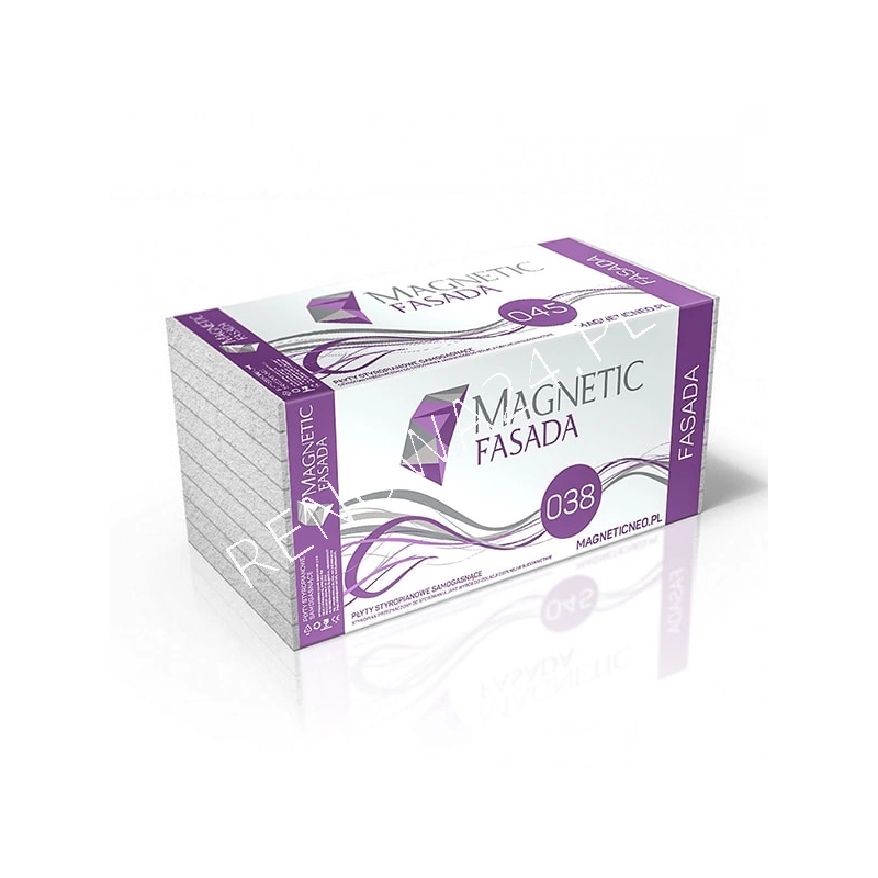 MAGNETIC FASADA 038  - Współczynnik przewodzenia ciepła λD ≤ 0,038 W/mK Klasa reakcji na ogień E Wymiary płyt 1000 x 500 mm Krawędzie proste.