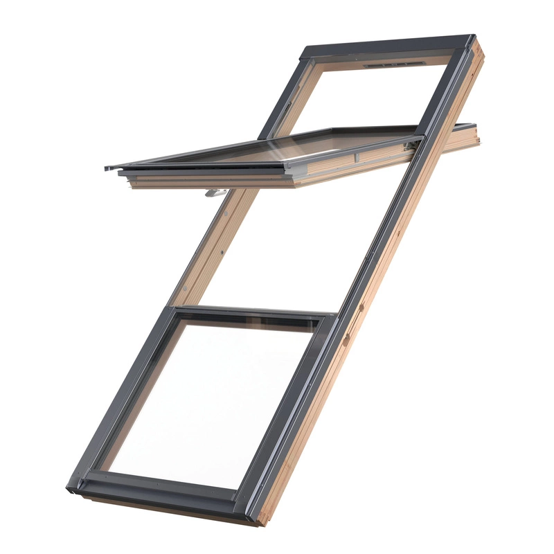 Drewniane okno dachowe o podwyższonej osi obrotu z naświetlem dolnym FDP-V P50 APMX nowej generacji GREENVIEW