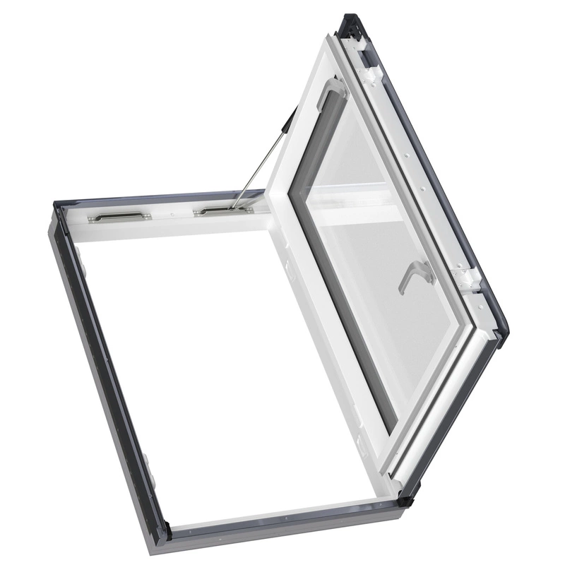 Tworzywowe okno wyłazowe PWP P50 ABMX to nowoczesne rozwiązanie dla wymagających użytkowników, łączące znakomitą izolację termiczną, bezpieczeństwo, wygodę użytkowania oraz doskonałą redukcję hałasu. Dzięki zastosowaniu energooszczędnego pakietu szybowego P50 i technologii termoPro, zapewnia komfort przez cały rok. Wykonane, w dużej części, z materiałów przetworzonych i praktycznie w całości może ulec recyklingowi. Biały profil PVC łączy elegancję z podwyższoną odpornością na wilgoć. Zastosowany siłownik gazowy wspomaga pracę wyłazu i utrzymuje go w stałej pozycji ułatwiając dostanie się na dach, niwelując możliwość zatrzaśnięcia się na dachu, nawet przy silnych podmuchach wiatru.