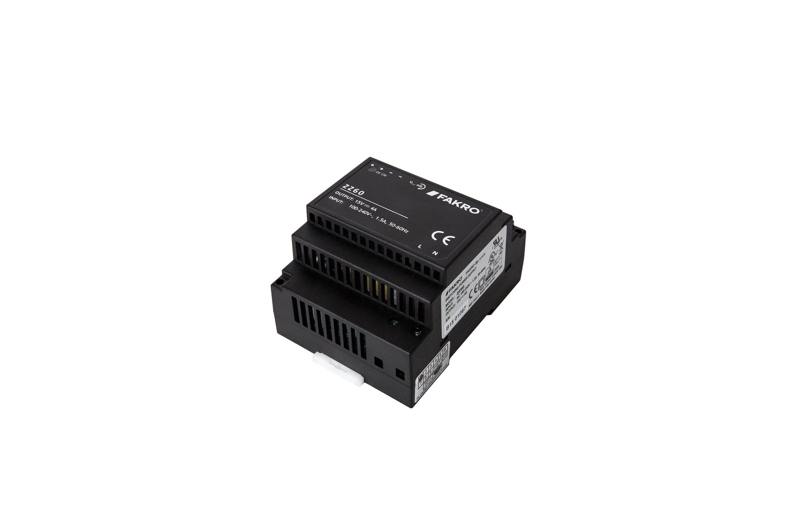 Zasilacz impulsowy wentylowany 15V DC służy do dopasowania dostępnego napięcia do wymagań produktu elektrycznego. Przeznaczony do zasilania urządzeń FAKRO Z-Wave. Przystosowany do montażu w skrzynce rozdzielczej na szynie DIN.
