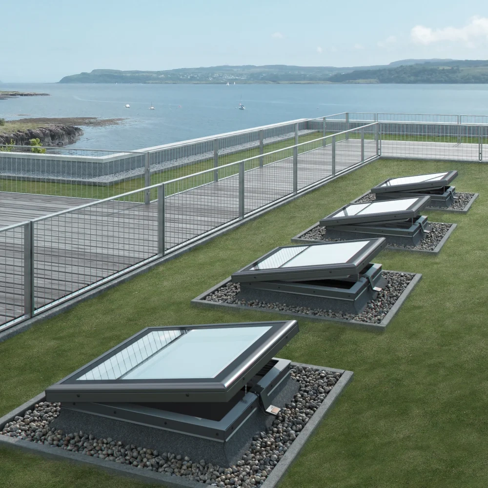 Okno do dachu płaskiego Rooflite+ FRE B600 120x120 3-szybowe elektryczne