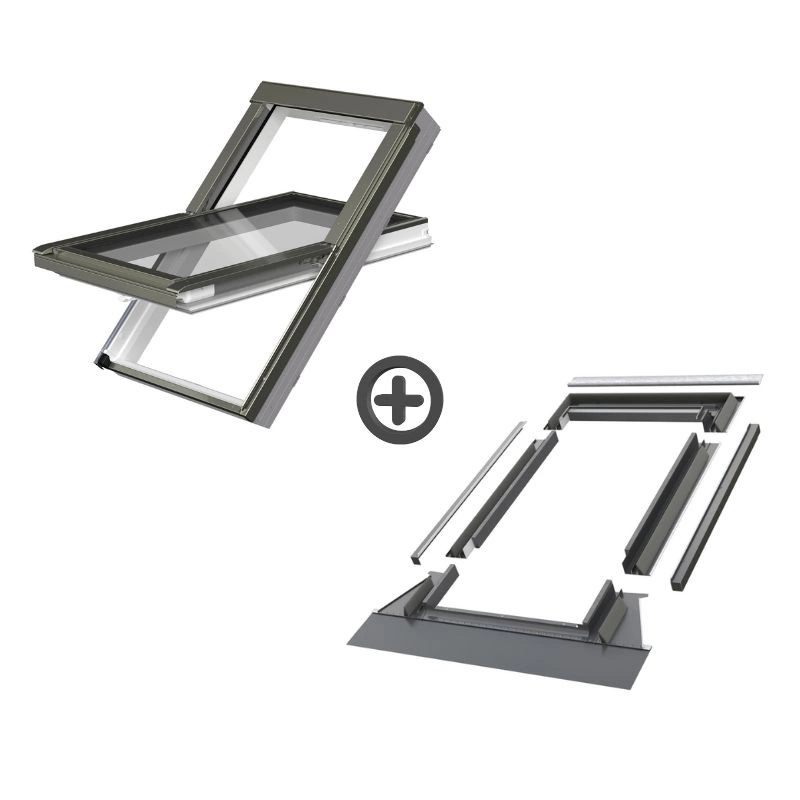 Zestaw Okno FAKRO PTP-V U41 GBMX z Kołnierzem EHV-AT THERMO 78x118