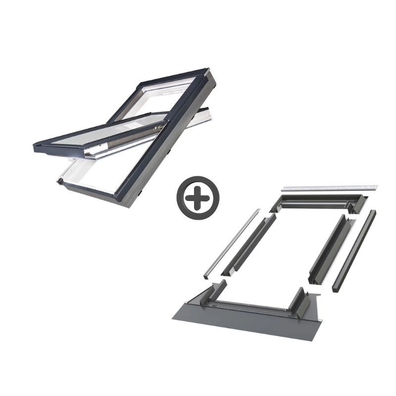 Zestaw okno dachowe FAKRO PTP-V U41 BBMX 78X140 3-szybowe + kołnierz EHV-AT RAL 9005