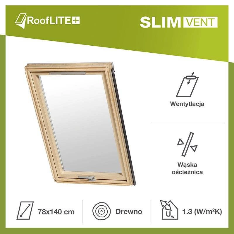 Drewno sosnowe wykorzystywane w produkcji okna dachowego RoofLITE+ Slim Vent posiada certyfikat FSC i pochodzi ze zrównoważonych lasów. Podwójne oszklenie (wypełnione argonem) zastosowane w oknie ma wartość współczynnika Ug 1,0 W /m2K, a także powłokę o niskiej emisyjności i hartowanej szybie zewnętrznej. Dzięki tym cechom utraty ciepła w zimie i nadmierne przegrzewanie latem są ograniczone. Wąska, wyprofilowana ościeżnica nadaję wnętrzu nowoczesnego charakteru. Uchwyt wykonany jest z odlewanego cynku i blokuje okno w trzech pozycjach, dwie z nich umożliwiają pasywną wentylację.