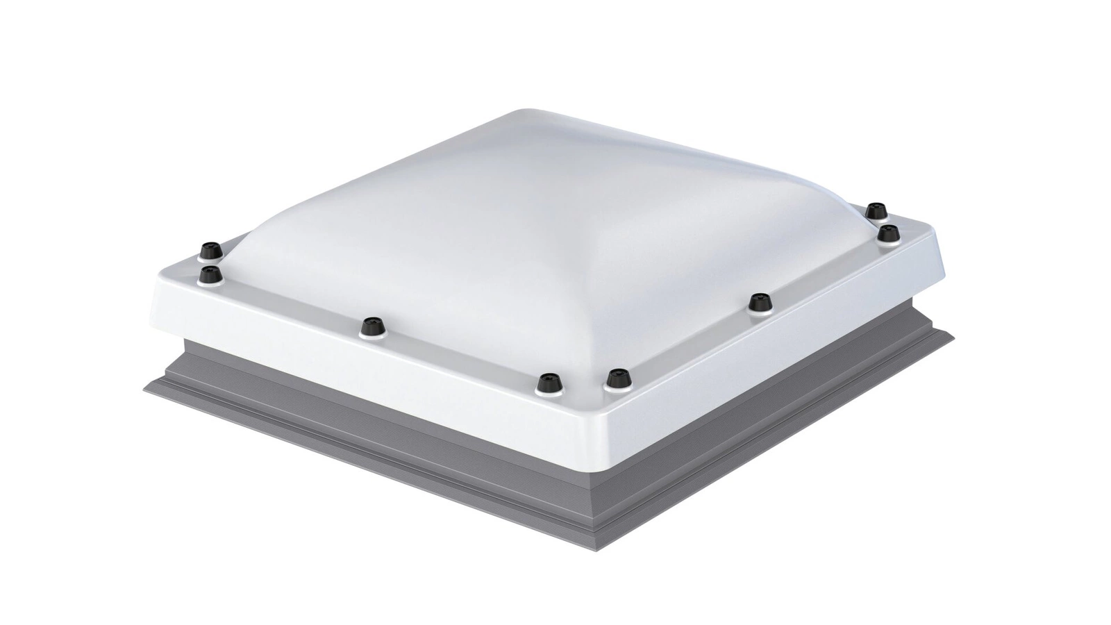 Matowa kopuła okna zbudowana jest z wytrzymałego poliwęglanu - duża odporność na uderzenia oraz czynniki atmosferyczne. Specjalne powłoki na czaszy zabezpieczają przed promieniowaniem UV.