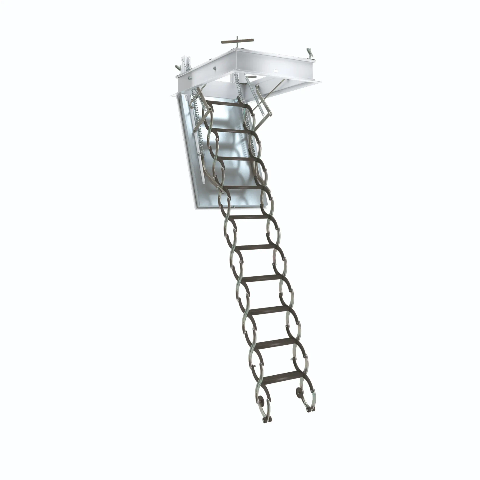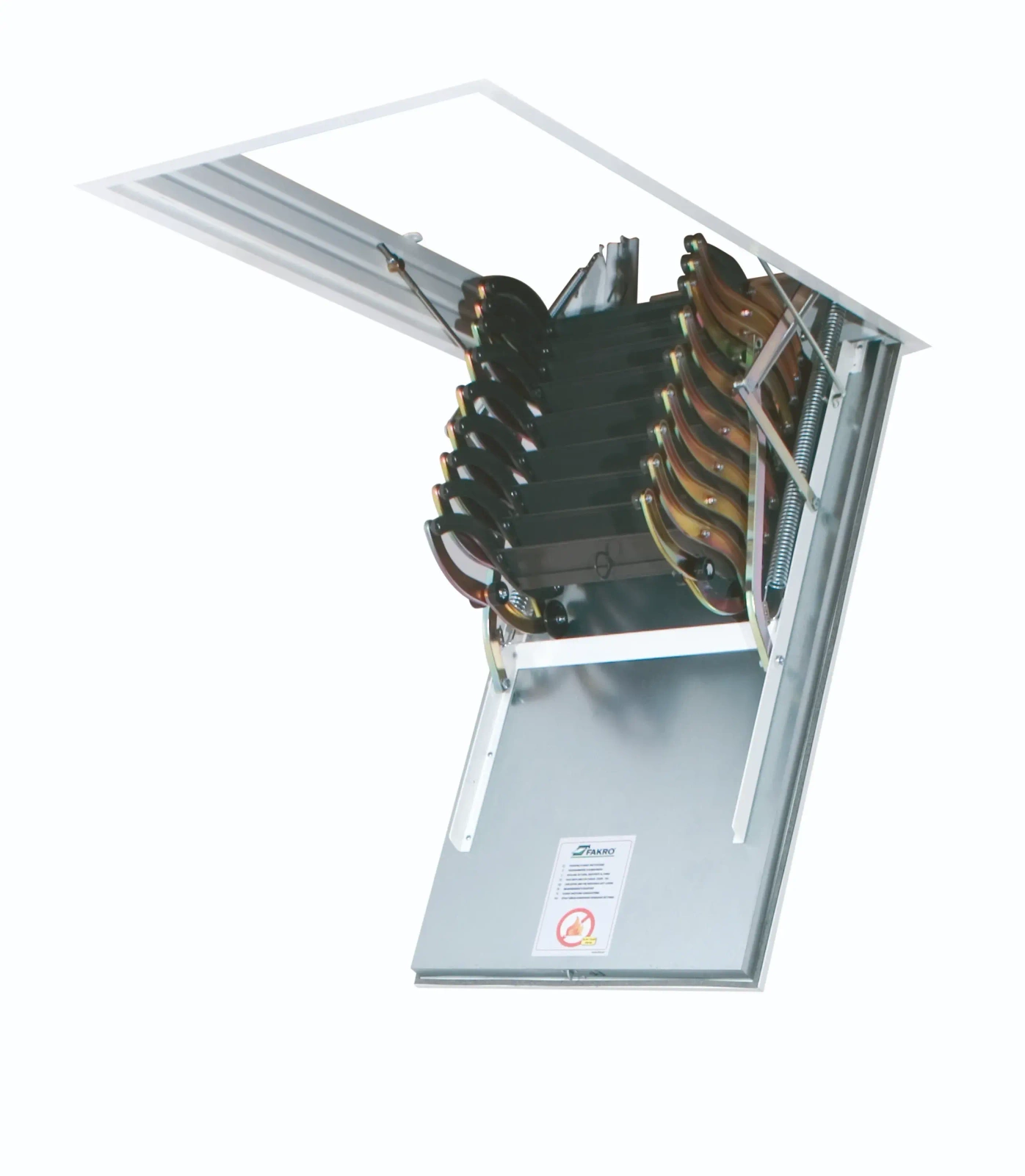 Schody strychowe nożycowe LSF to schody o właściwościach ognioodpornych. Zapewniają ochronę do 60 minut przed przedostaniem się ognia na wyższą kondygnację. Klapa jest wyposażona w uszczelkę pęczniejącą, która pod wpływem wysokich temperatur zwiększa swoją objętość i zapobiega rozprzestrzenianiu się ognia na kondygnację wolną od pożaru. Termoizolacyjna klapa o grubości 5,6 cm jest wykończona blachą arkuszową. Klapa wyposażona w zamek. Nożycowa konstrukcja drabiny wykonanej z metalu pozwala na uzyskanie małych rozmiarów skrzyni, a także umożliwia łatwe dopasowanie schodów do wysokości pomieszczenia (istnieje możliwość przedłużenia drabiny do wysokości 320 cm poprzez dokupienie 1 stopnia LSS – stopień ten należy dopasować w zależności od szerokości schodów). Schody są wyposażone w system szybkiego montażu, który ułatwia i przyspiesza proces instalacji schodów w stropie. Oprócz tego w wyposażeniu standardowym znajduje się drążek do otwierania klapy oraz metalowe listwy wykończeniowe pozwalające na dokładne i szybkie osadzenie schodów w suficie oraz zamaskowanie szczeliny pomiędzy skrzynią a stropem.