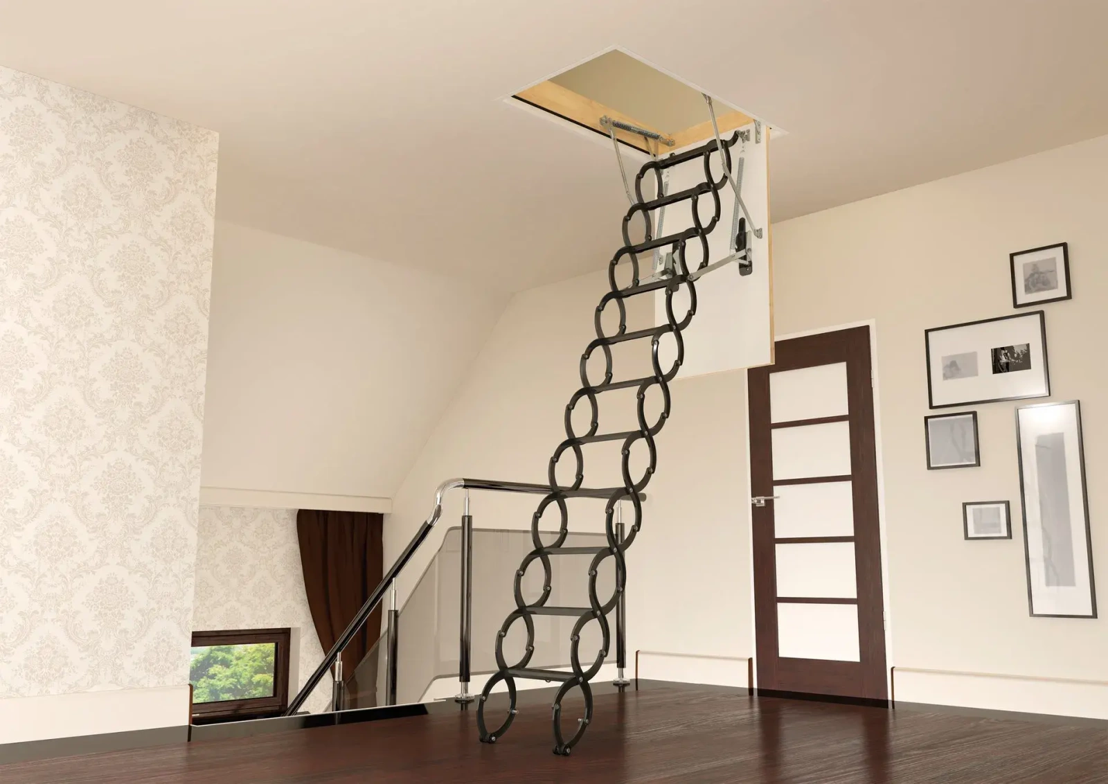 • Luk górny FAKRO LXW, który stosuje się w sytuacjach, gdy zachodzi potrzeba dodatkowego zamknięcia strychu. Zastosowanie luku górnego dodatkowo podnosi walory termoizolacyjne schodów.