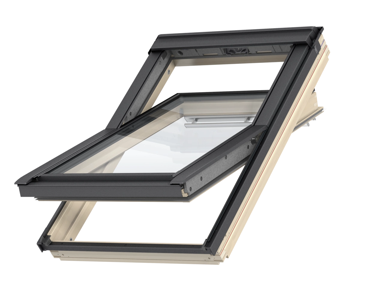 Energooszczędne, obrotowe okno dachowe o doskonałych właściwościach termoizolacyjnych. Współczynnik przenikania ciepła 1,0 W/m2K zapewnia optymalną ochronę przed wychłodzeniem i nadmiernym nagrzewaniem się poddasza. Zewnętrzna szyba została pokryta powłoką łatwozmywalną, dzięki czemu sama oczyszcza się pod wpływem promieniowania UV i opadów deszczu. Okno GLL zawiera wbudowany nawiewnik z wymiennym filtrem powietrza. Profile wewnętrzne i ościeżnica wykonane są z impregnowanego drewna sosnowego. Oblachowanie zewnętrzne jest ciemnoszare (RAL 7043). Uchwyt do otwierania okna znajduje się w górnej części skrzydła.