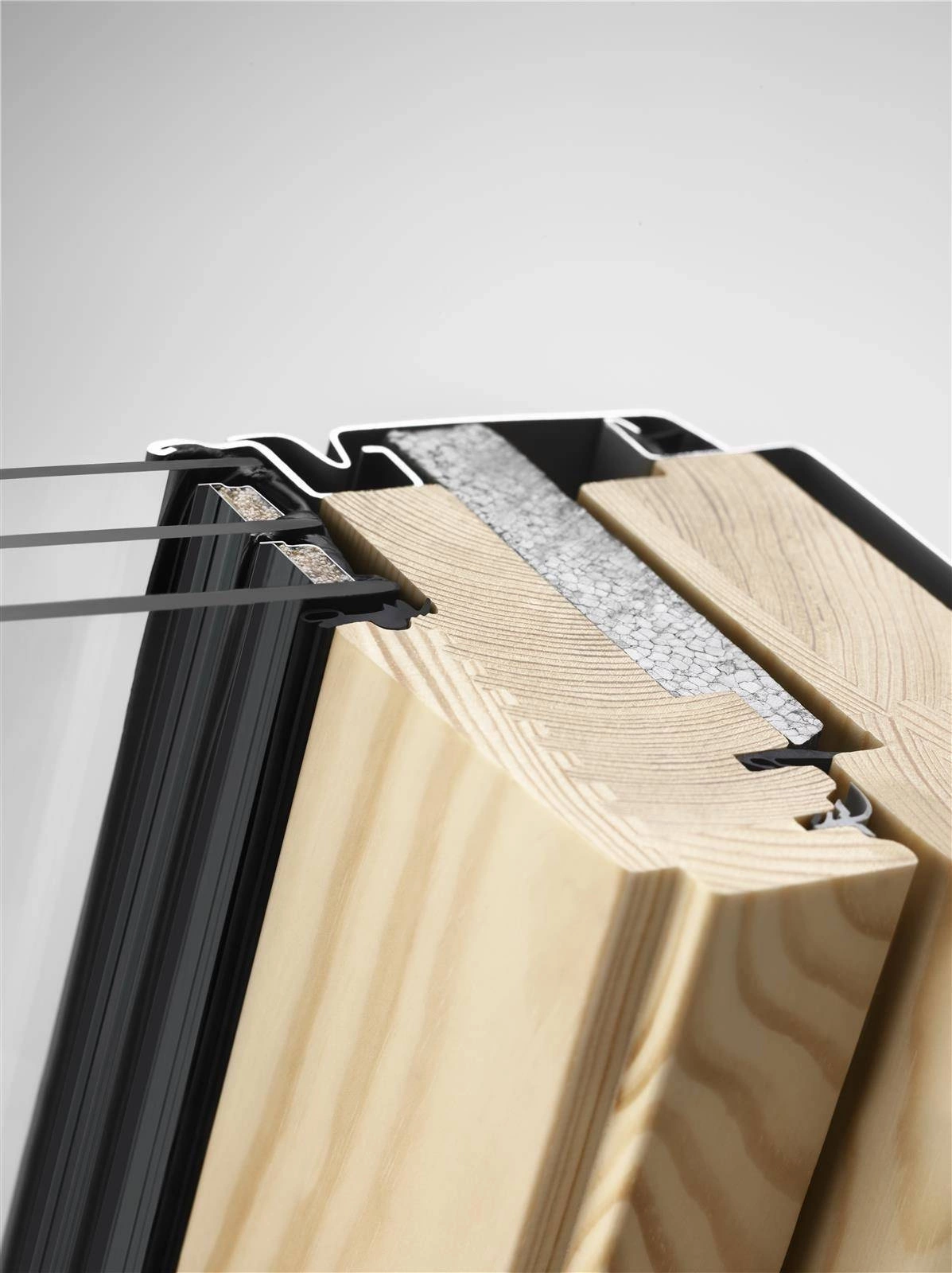 • Drewno łączone z wysokoizolacyjnym tworzywem EPS zapewnia podwyższoną ochronę przed stratami ciepła.