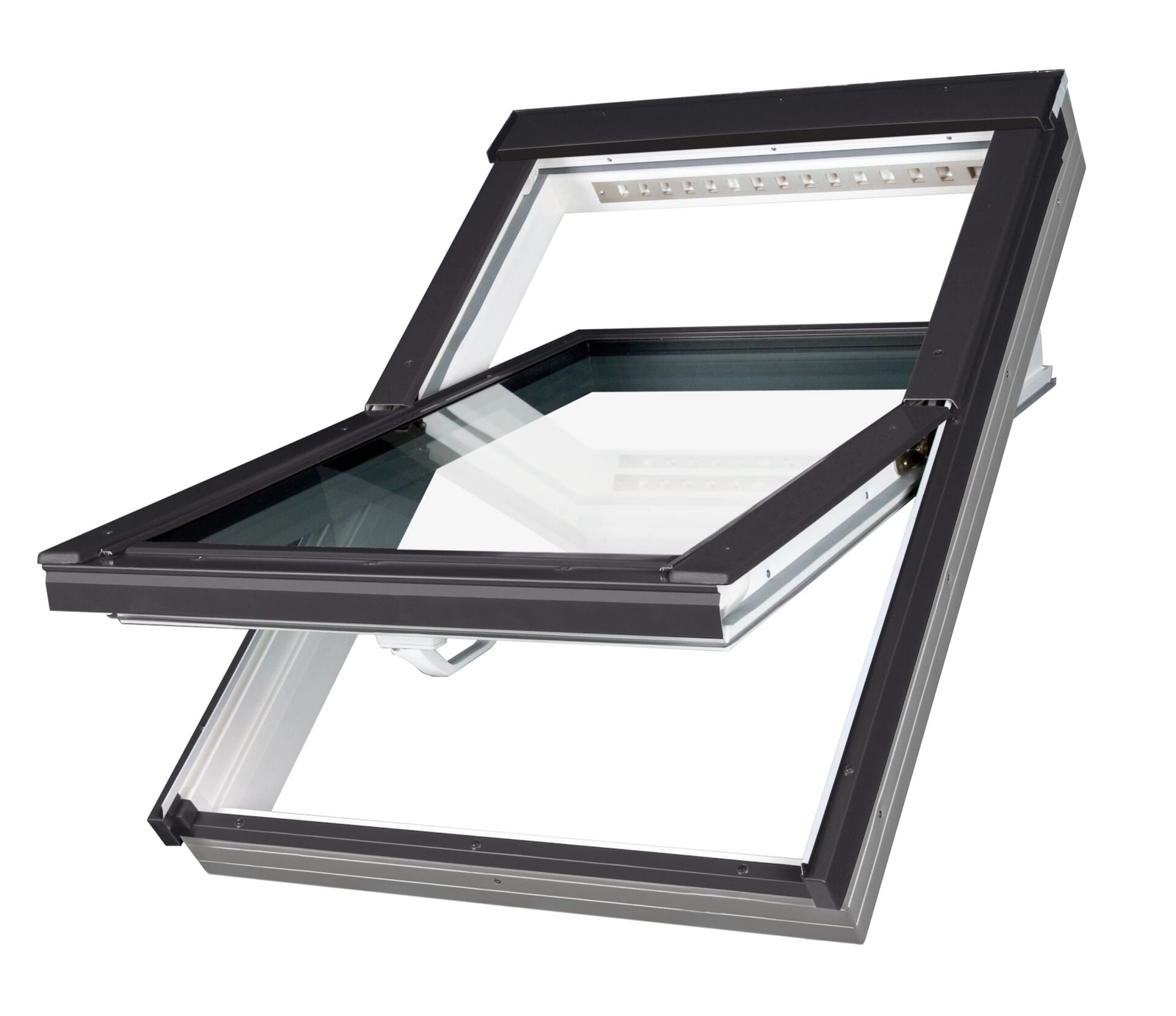 - Popularna konstrukcja okien z zawiasem umieszczonym w połowie wysokości okna przeznaczona do pomieszczeń o podwyższonej wilgotności. - Wygodna obsługa okna za pomocą klamki umieszczonej w dolnej części skrzydła. - Klamka posiada dwa stopnie mikrouchylenia. - Łatwy sposób mycia zewnętrznej szyby i zakładania markizy dzięki zasuwce blokującej obrócone skrzydło o 180°. - Podwyższona odporność na włamanie - system topSafe. - Bogata oferta akcesoriów wyposażenia dodatkowego. - Możliwość zamontowania sterowania elektrycznego. - Zakres montażu 15-90°.