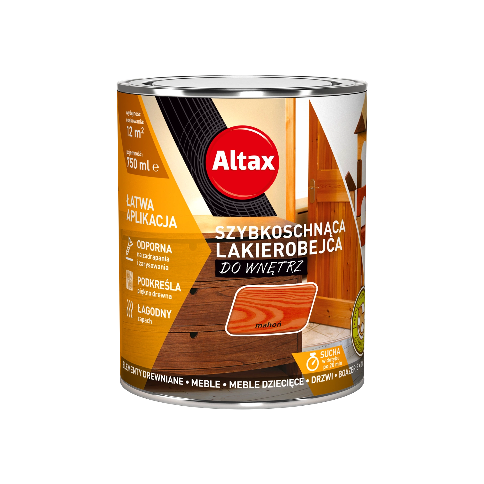 Lakierobejca do drewna ALTAX szybkoschnąca do wnętrz mahoń połysk 0,75l