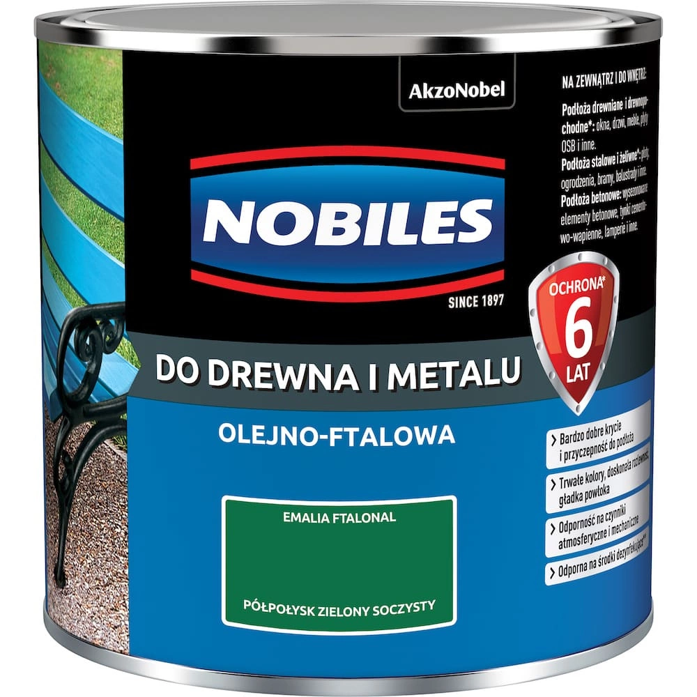 Emalia Nobiles Do Drewna i Metalu Ftalonal to nawierzchniowa farba olejno-ftalowa przeznaczona do ochronno-dekoracyjnego malowania powierzchni drewnianych, drewnopochodnych, metalowych (stalowych i żeliwnych) oraz betonowych pokrytych uprzednio farbami podkładowymi lub antykorozyjnymi.