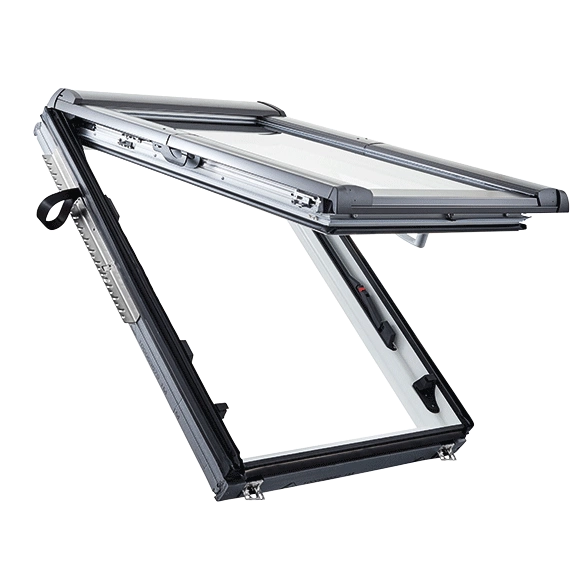 Dzięki podwójnemu systemowi otwierania sterowanemu za pomocą jednej klamki okna dachowe Designo R8 wyróżniają się najwyższą funkcjonalnością spośród wszystkich oferowanych przez Roto produktów. Designo R8 posiada również wysokie parametry termoizolacji, przez co bardzo dobrze sprawdzi się w budownictwie energooszczędnym i pasywnym.