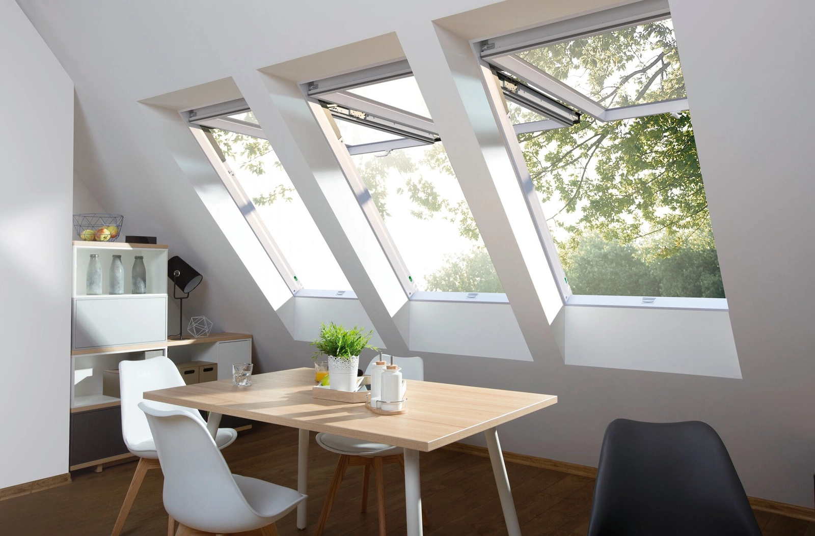 - montowane w dachu o kącie nachylenia od 15o do 55o, specjalna wersja okna od 55o do 85o