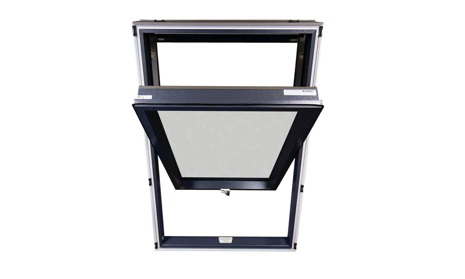 Okno o konstrukcji obrotowej. Skrzydło można obracać wokół osi o 180° i zablokować je zasuwką ryglującą co pozwala na wygodne i bezpieczne mycie szyby zewnętrznej.