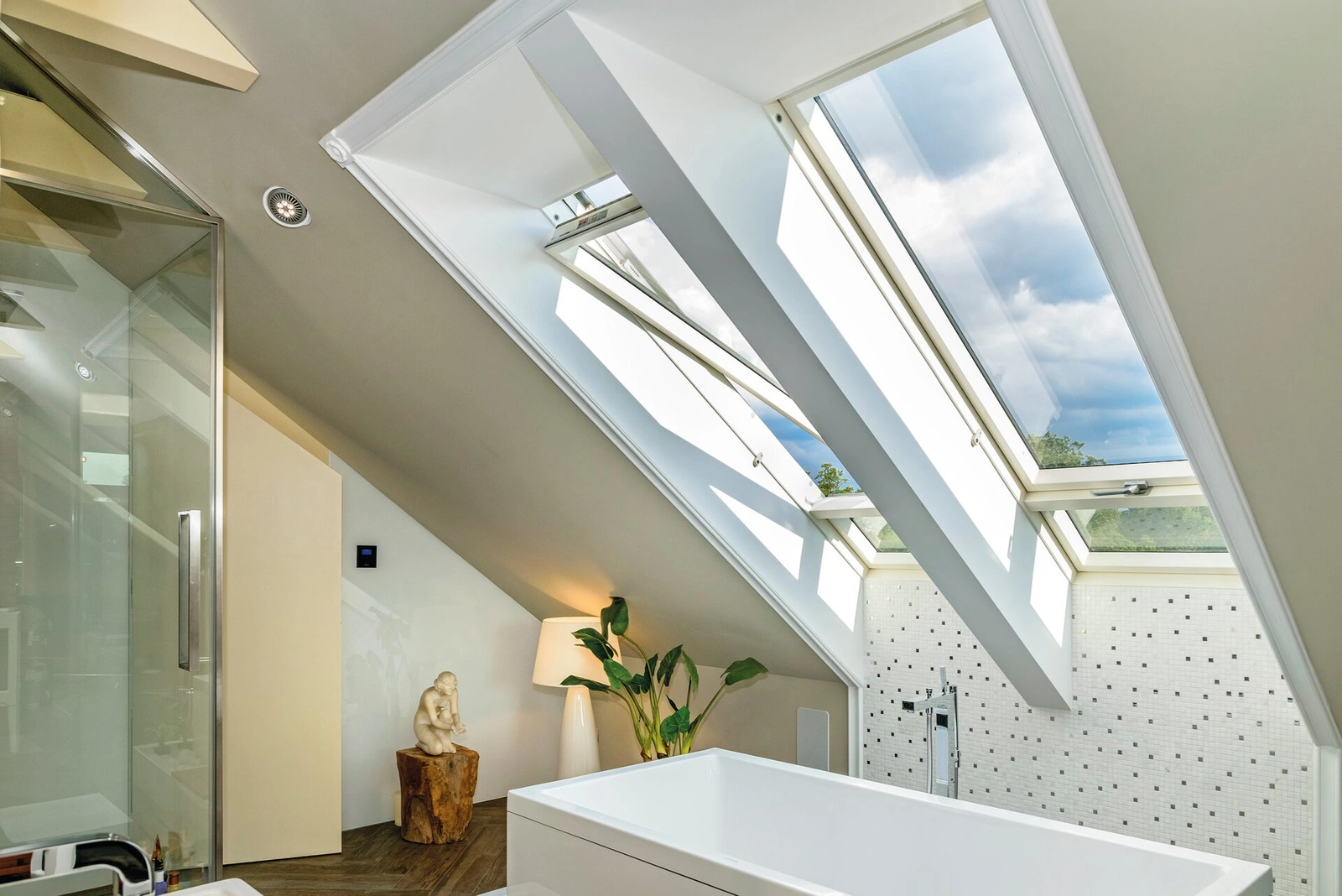 - wyposażone w nawiewnik V40P, który poprzez automatyczną regulację wielkości kanału przepływu dostarcza optymalną ilość powietrza do pomieszczenia zapewniając zdrowy mikroklimat na poddaszu oraz oszczędność energii cieplnej,