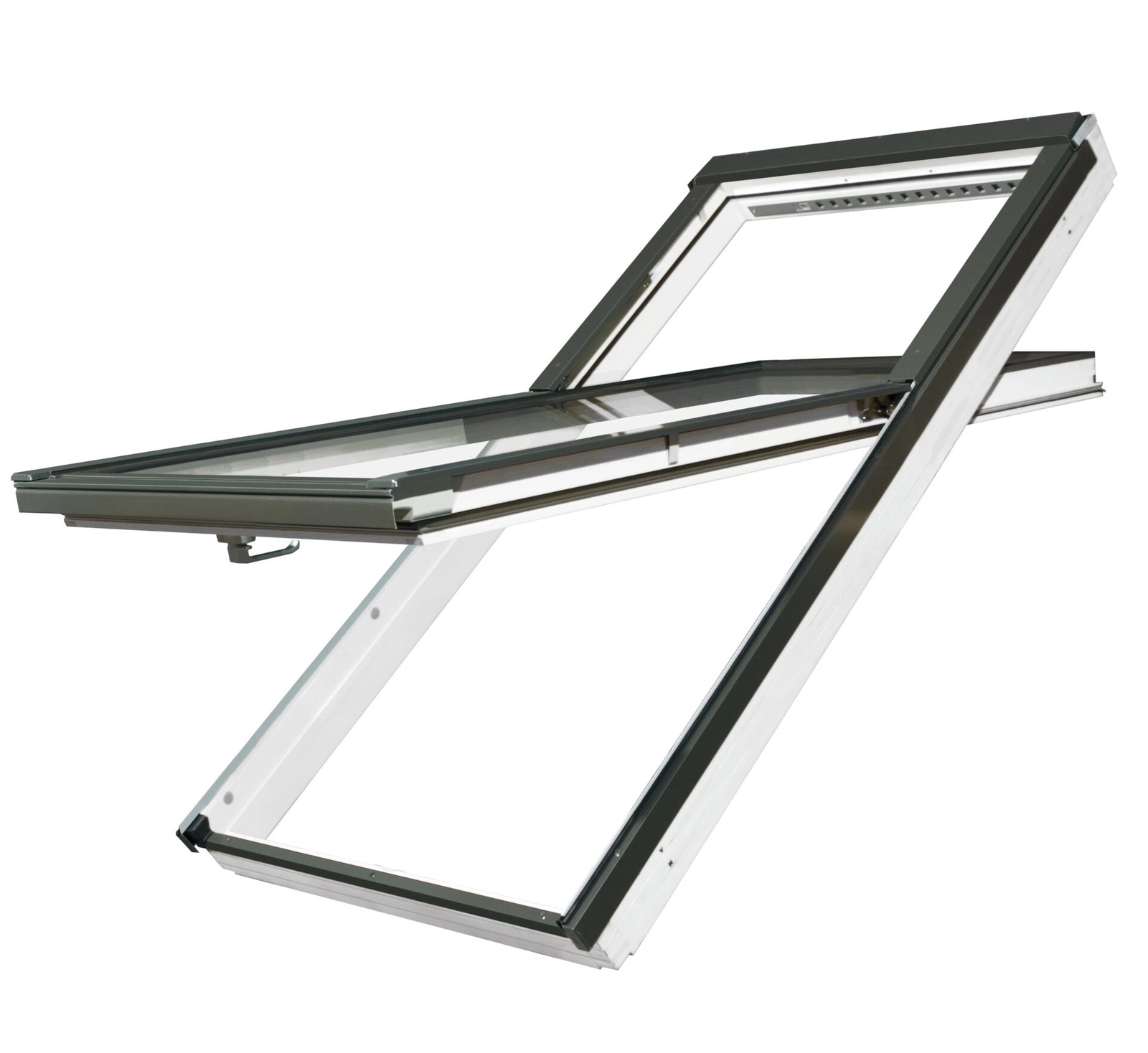 Bogato wyposażone okno otwierane obrotowo, z osią obrotu umieszczoną powyżej połowy wysokości okna, przez co nawet wysoka osoba może podejść do krawędzi okna. Skrzydło można również obracać wokół osi o 160° i zablokować je zasuwką ryglującą, co pozwala na wygodne i bezpieczne mycie zewnętrznej szyby okna. Okno obrotowe obsługiwane za pomocą klamki z dwustopniowym mikrouchyleniem, umieszczonej w dolnej części skrzydła.