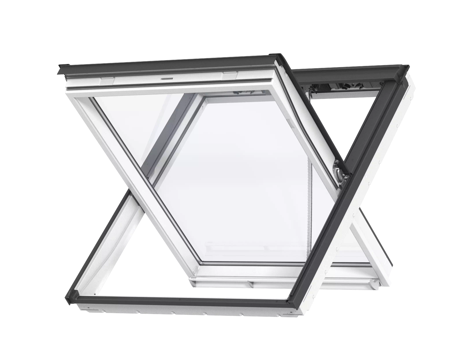 Okno oddymiające VELUX zostało zaprojektowane tak, aby szybko odprowadzić dym i ciepło. Okno wyposażone jest w silnik oddymiający i spełnia wszystkie wymagania UE. Do obsługi i automatycznego otwierania należy osobno zakupić system sterowania wentylacją oddymiającą VELUX KFX 210-214 lub KFC 210/220. System sterowania wentylacją oddymiającą VELUX może spełniać kilka funkcji, w tym automatycznie otwierać okno oddymiające. Można je również otwierać w celu wpuszczenia świeżego powietrza, aby poprawić klimat w pomieszczeniach.