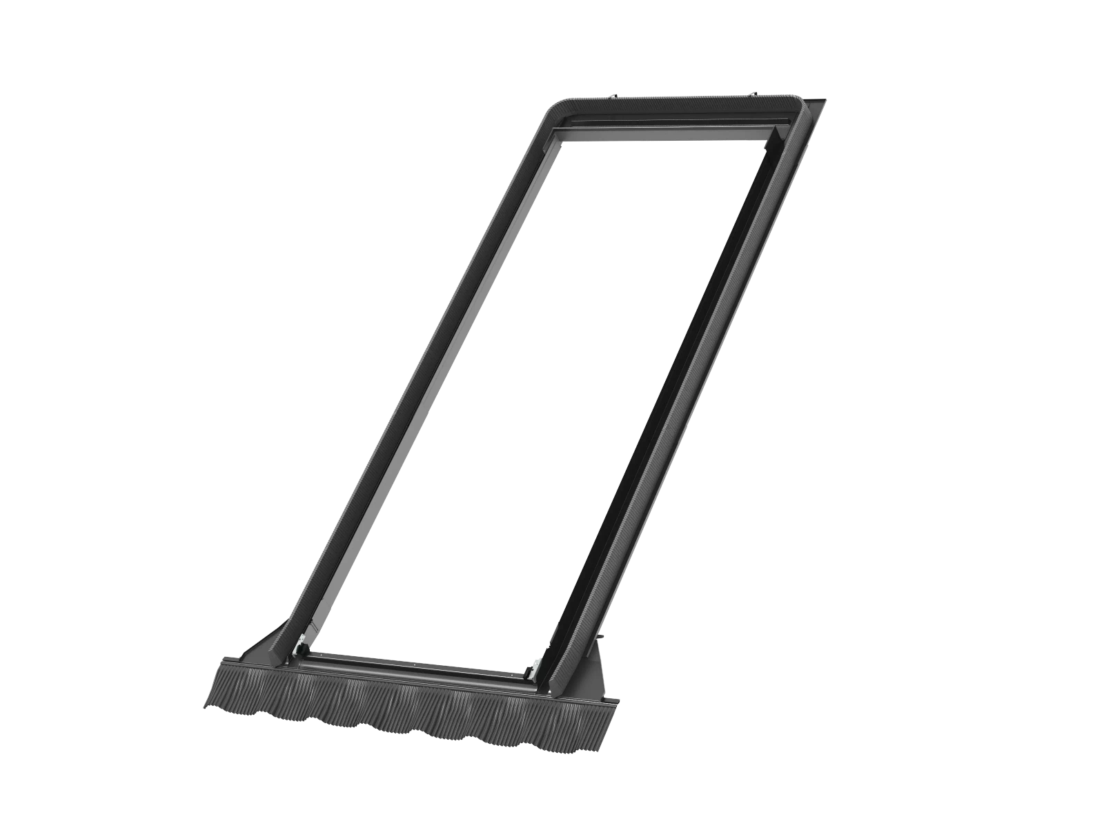 Kołnierz uszczelniający do pojedynczego montażu balkonu dachowego Velux. Odprowadza wodę deszczową, zapobiega przeciekom, zmniejsza ryzyko powstawania mostków termicznych. Zapewnia szczelne połączenie okna z połacią dachu. Przeznaczony jest do profilowanych materiałów pokryciowych o wysokości profilu do 120 mm.